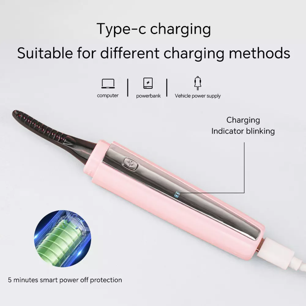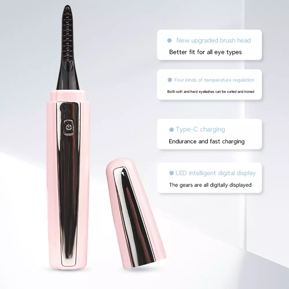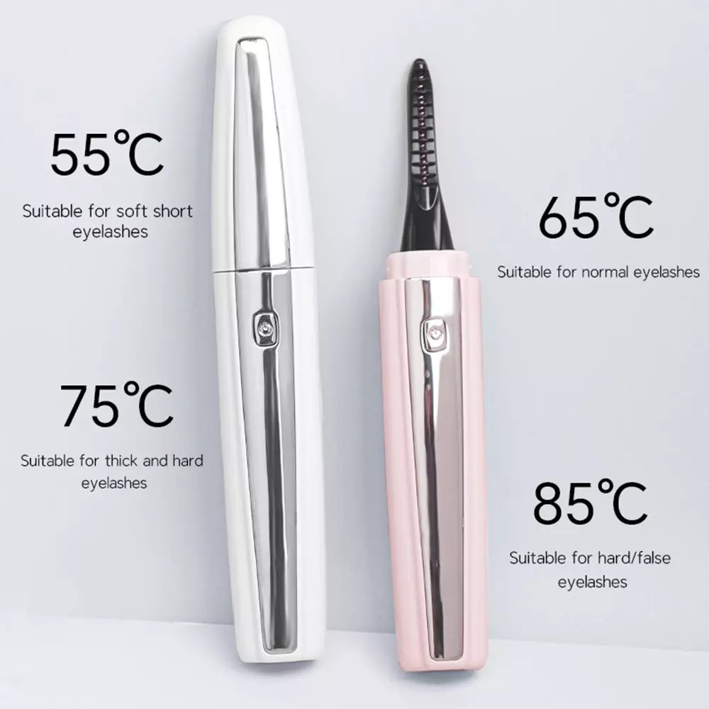 An electric eyelash curler usually consists of a heating element and an eyelash curler, and users can easily create naturally curled, thicker eyelashes by simply clamping their eyelashes over the heating element and waiting just a few seconds.