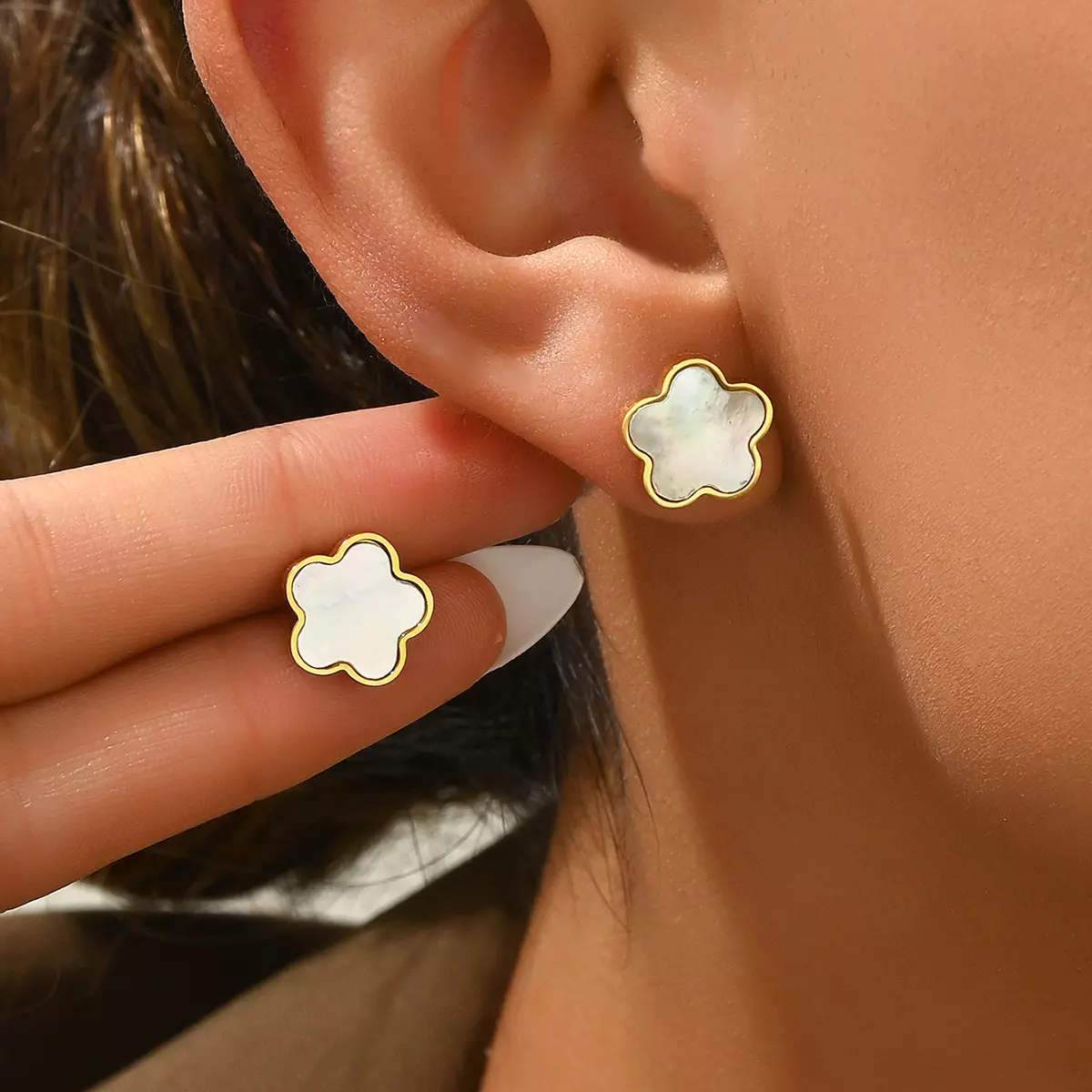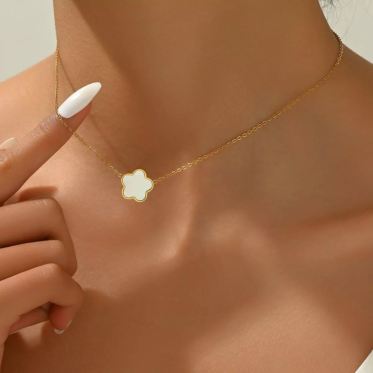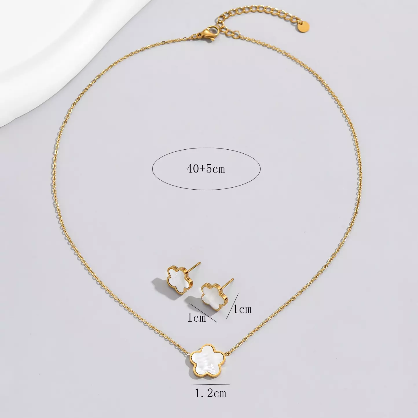Five-leaf flower set black and white shell titanium steel necklace and earrings