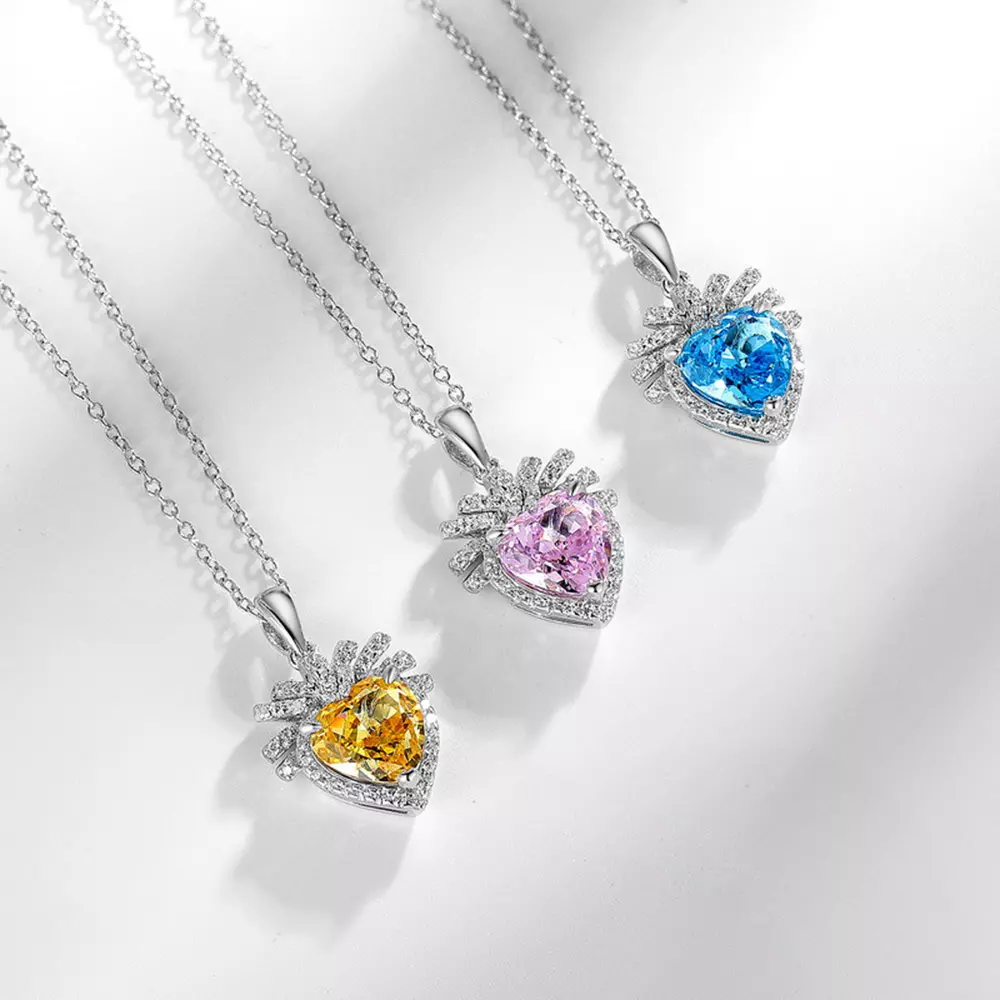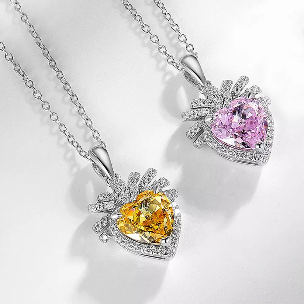Heart Sapphire Pendant Chain in S925 Silver with Pink Diamonds