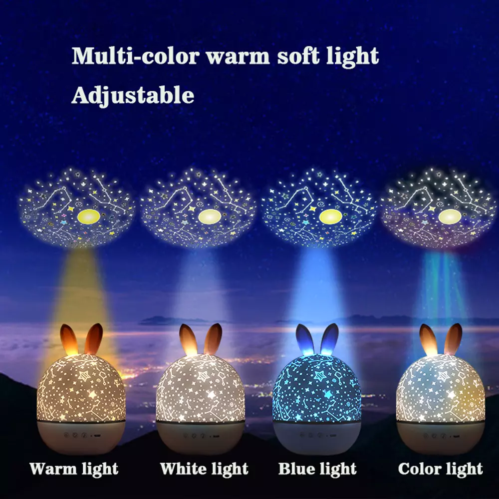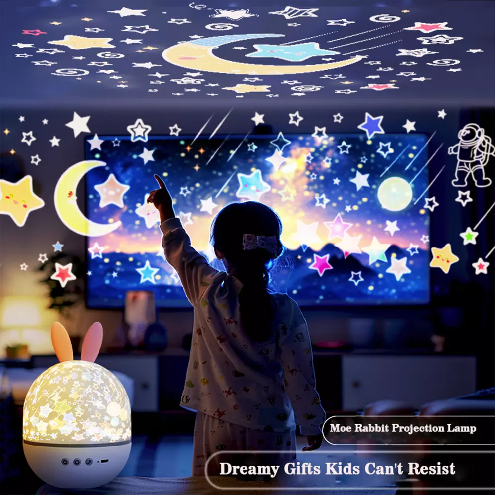 The Moe Rabbit Kids Bluetooth Music HD Projection Lamp is a creative product designed for kids, combining projection, music and light functions.