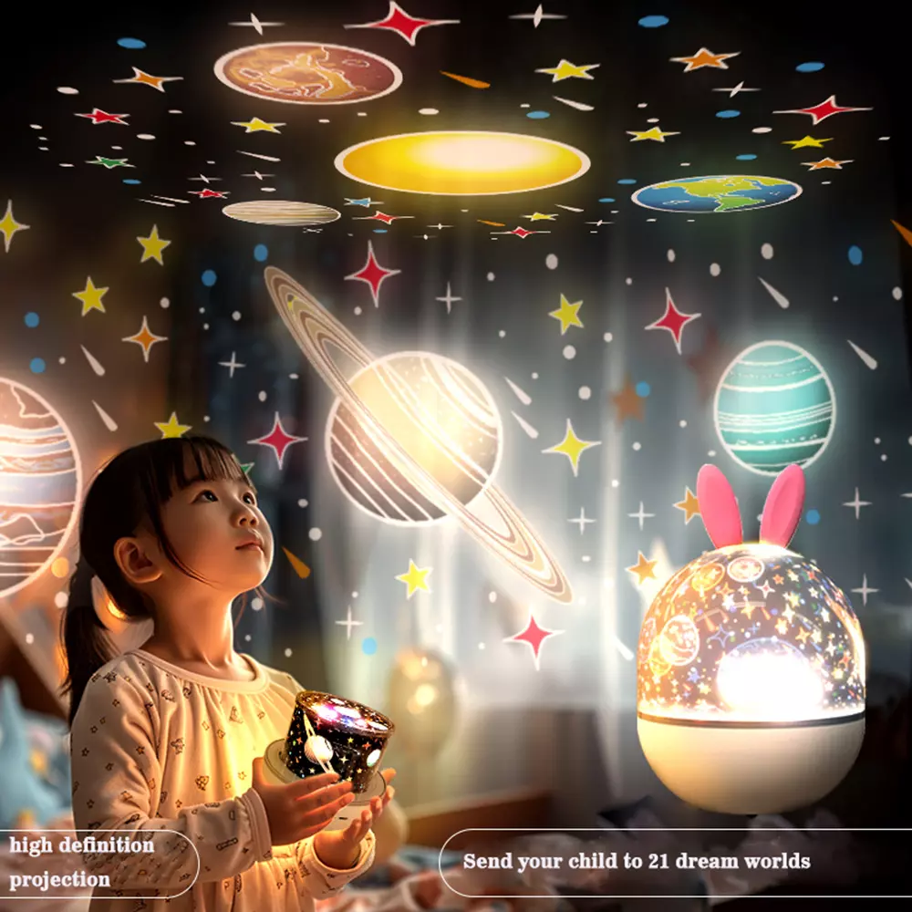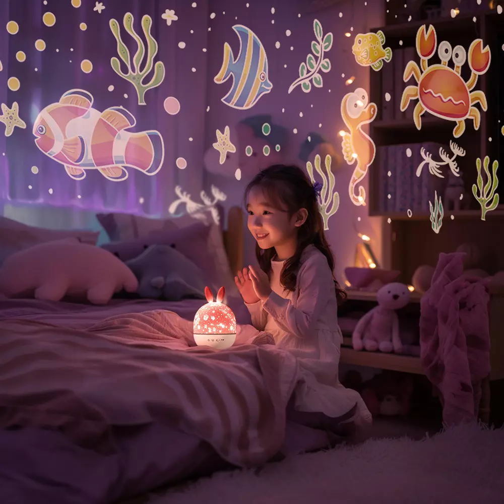 With its cute and adorable shape, the projection light is suitable to be placed in children's rooms or study areas, making it a good partner for kids when they study, play and rest.