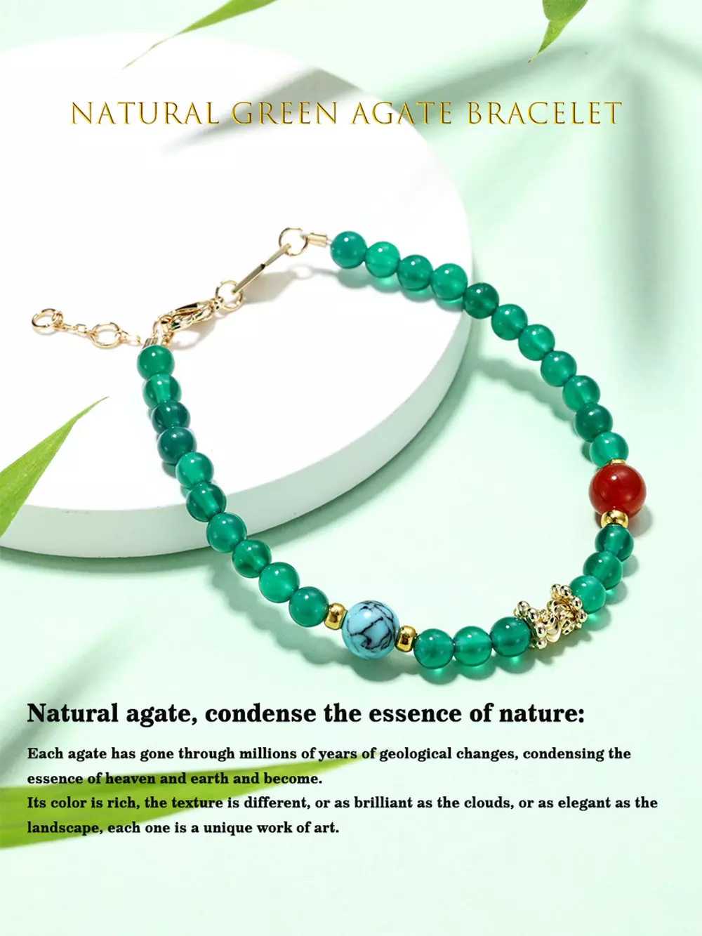 5. **Suitable for Gift Giving**: Green agate bracelets have a beautiful meaning and are exquisite in appearance, making them suitable as gifts for friends and relatives to express blessings and care.
