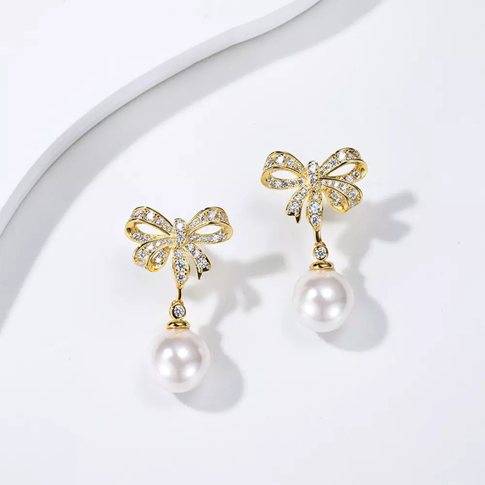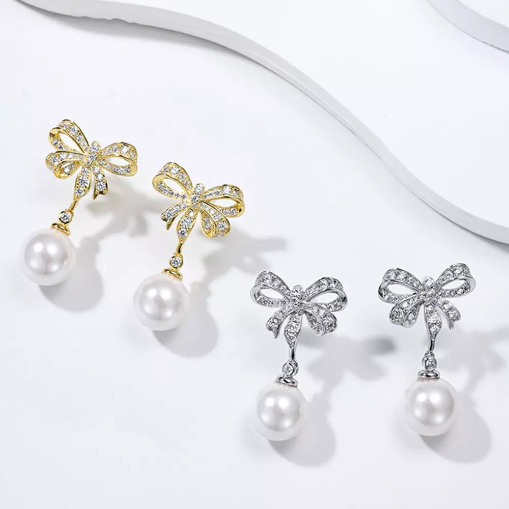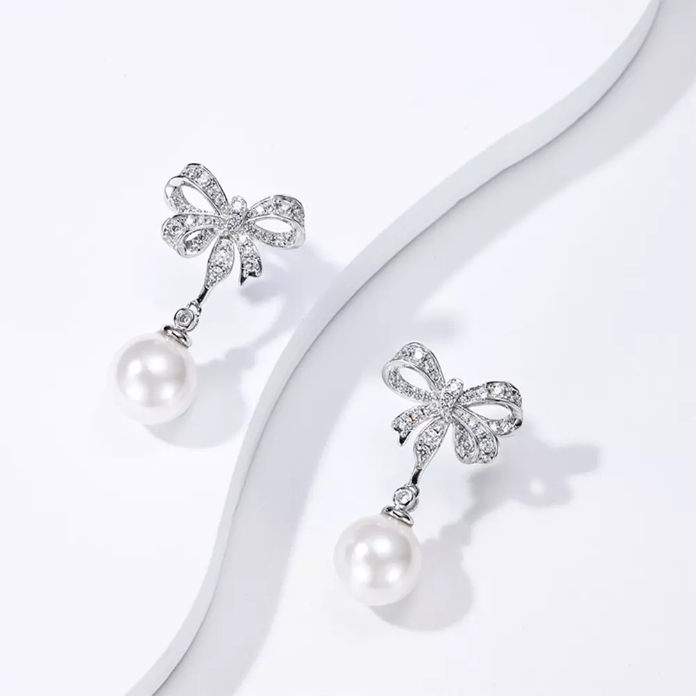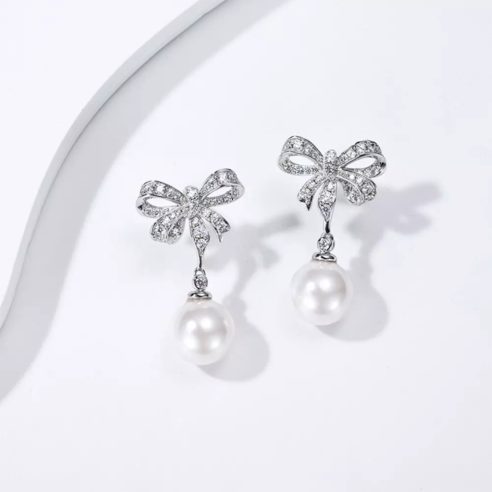 Detailed treatment: The bow and pearl are set with fine craftsmanship to ensure that the earrings are durable and not easy to fall off.