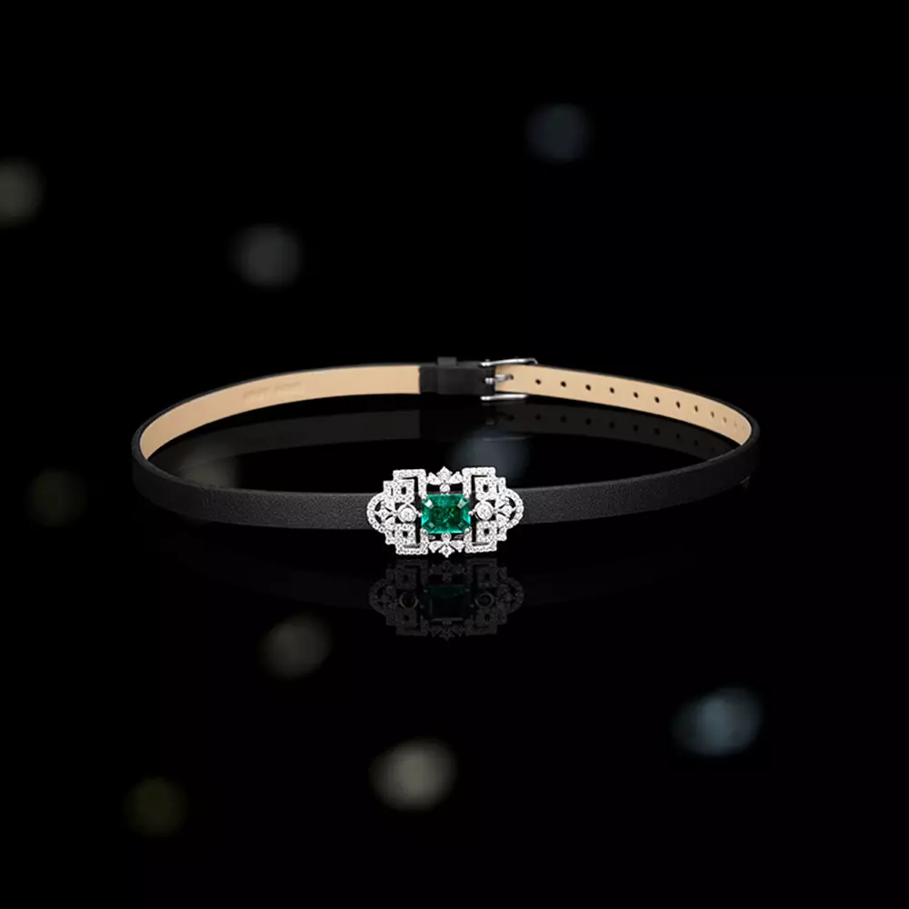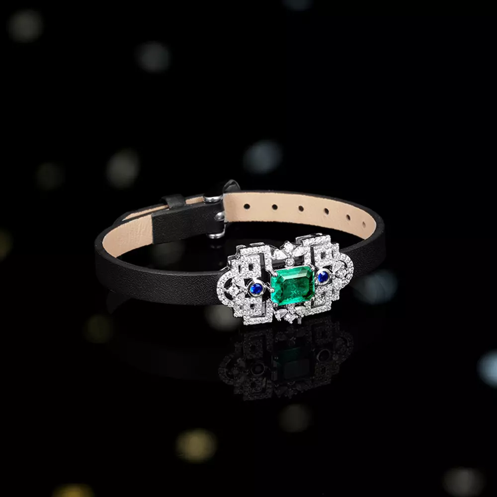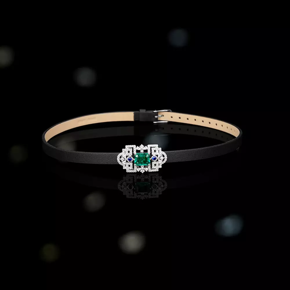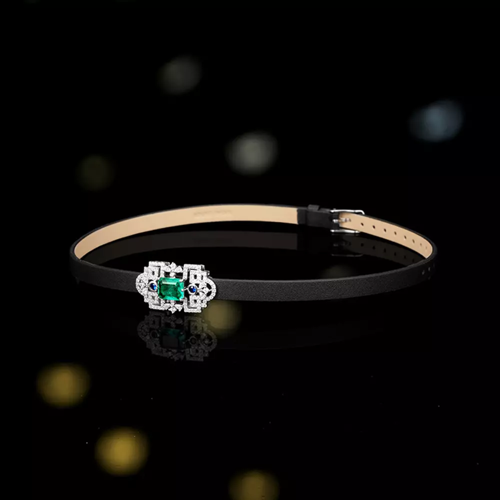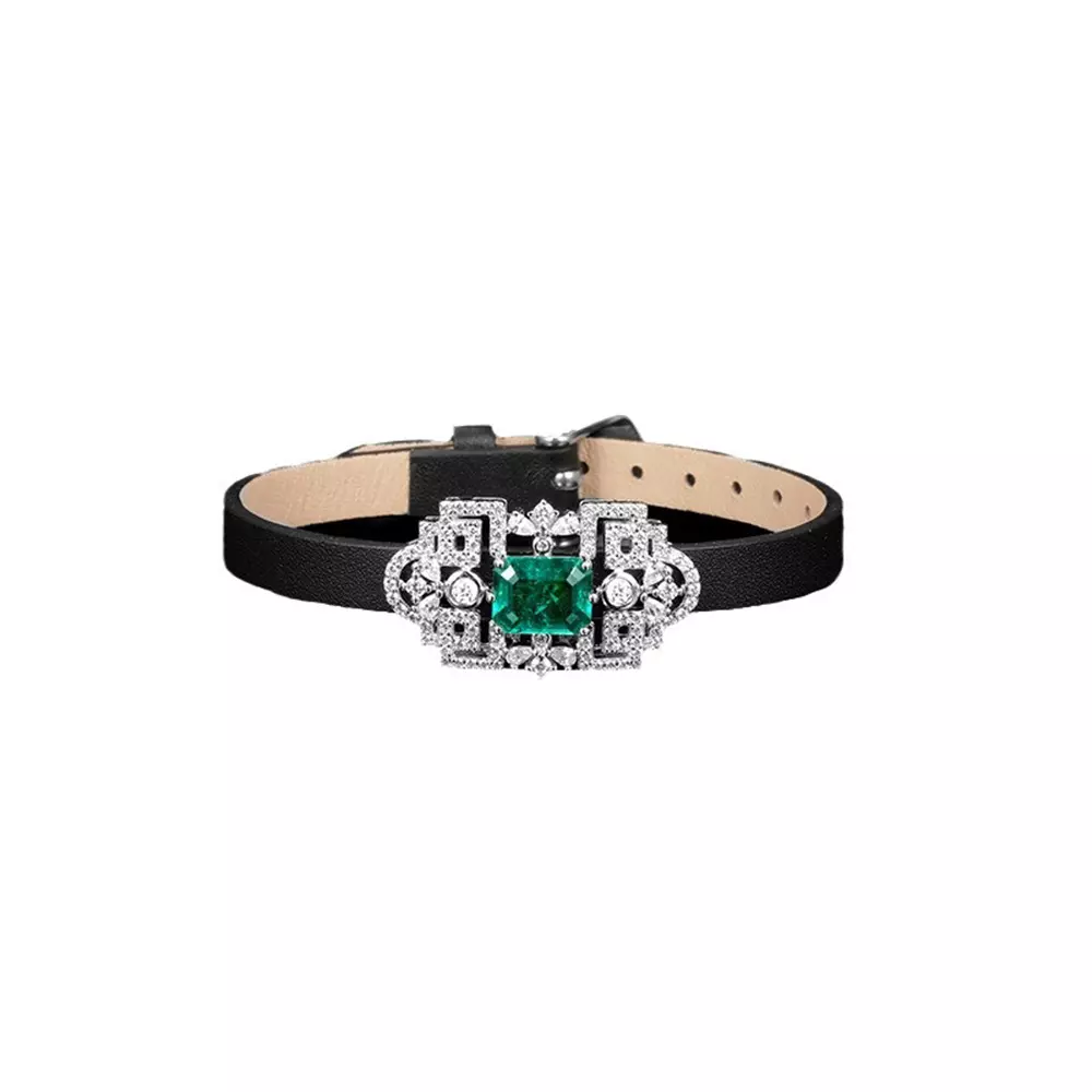 When the cold luster of S925 sterling silver meets vintage emerald, the gentle winding of the cowhide collar instantly lights up the elegance between the neck! ?