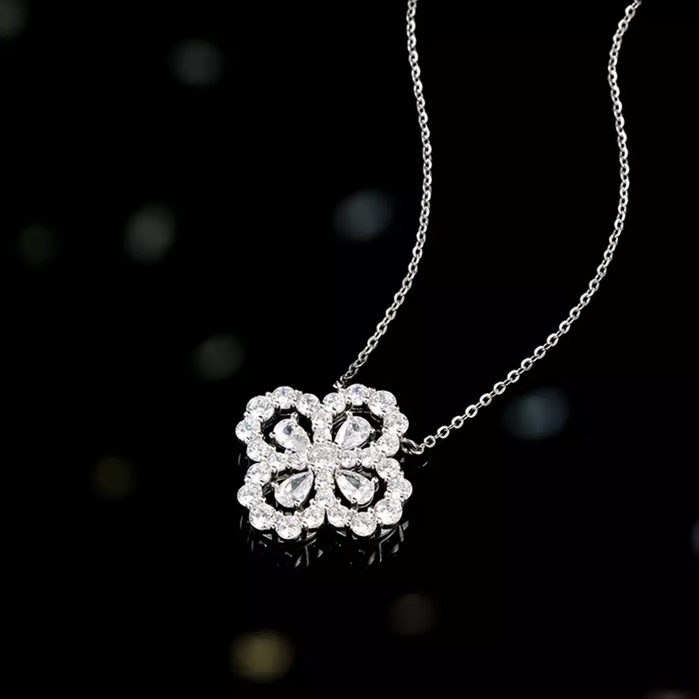 S925 Sterling Silver Premium Full Diamond Lucky Clover Necklace Description.