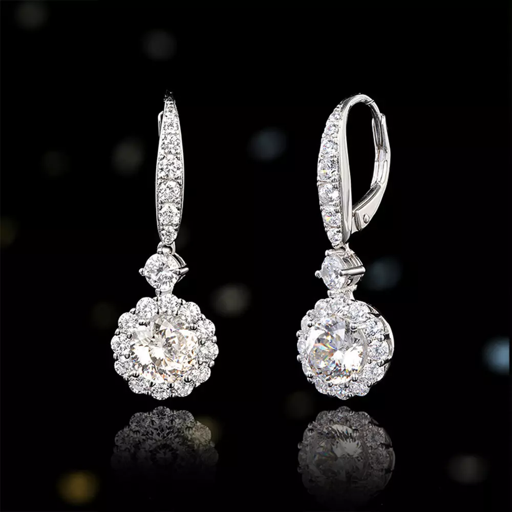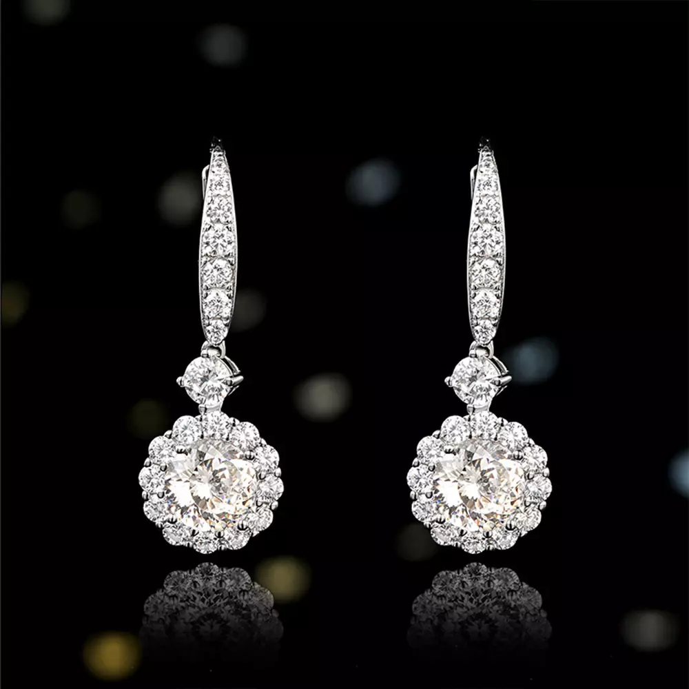 Sterling Silver Round Flower Diamond Drop Earrings - Light Up Your Elegant Moments