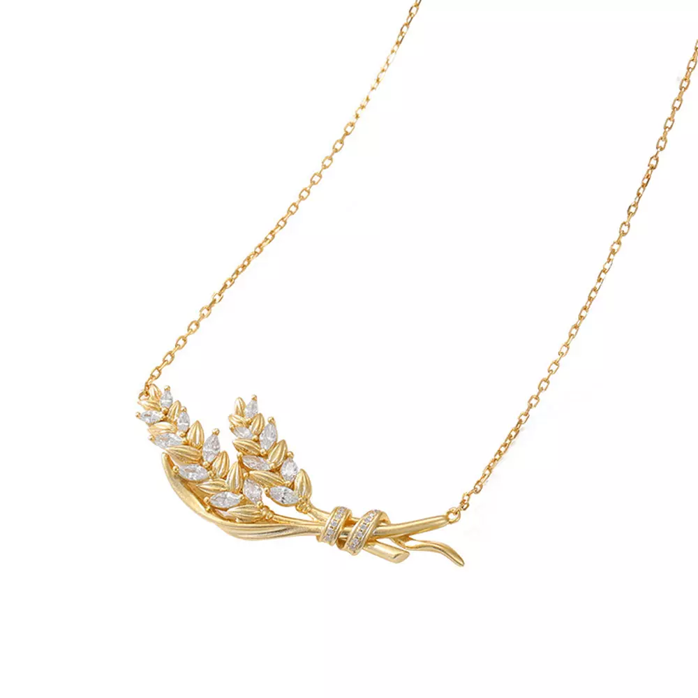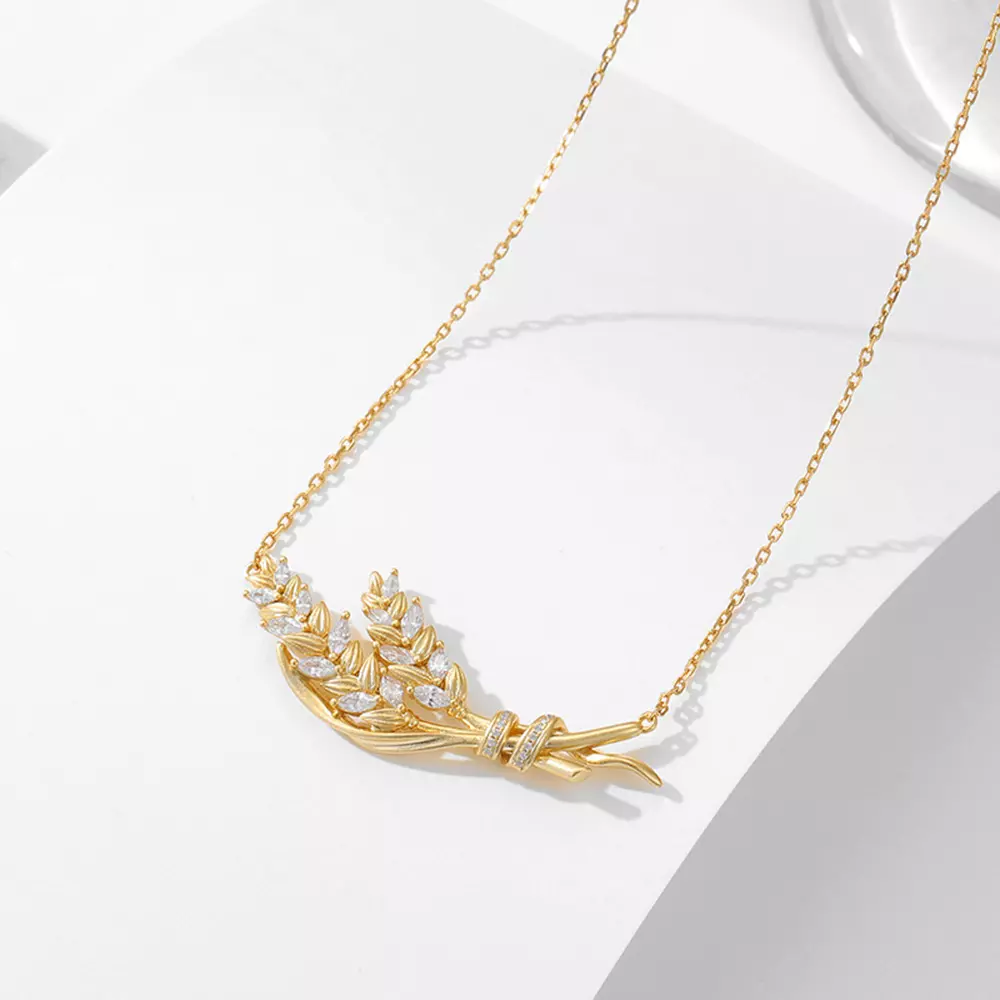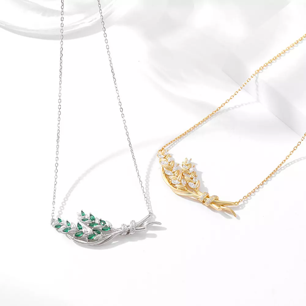 S925 Sterling Silver Wheat Ears Fashion Chill Pendant Necklace