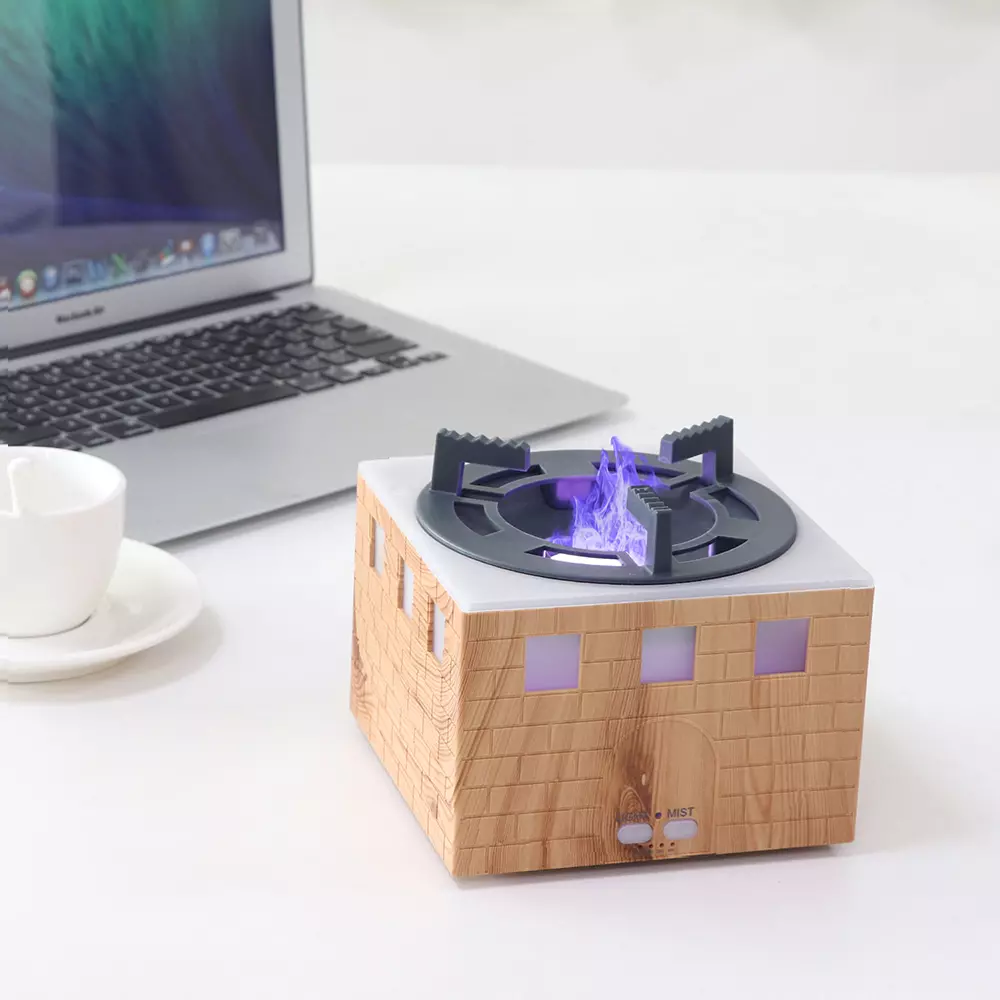Square Gas Stove Shaped Simulated Flame Aerosol Aromatherapy Humidifier is a home appliance that can humidify and aromatherapy at the same time.