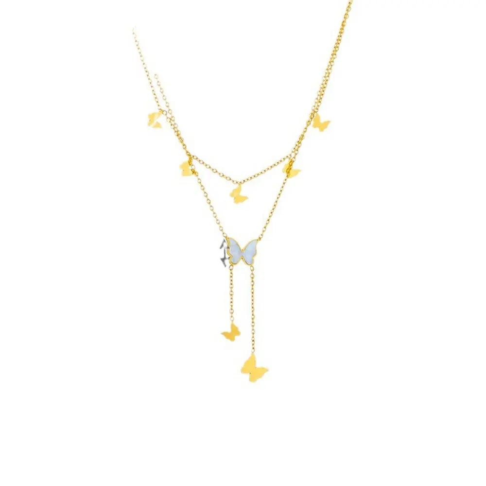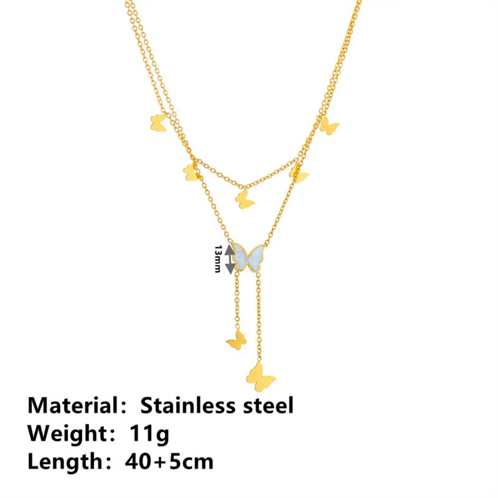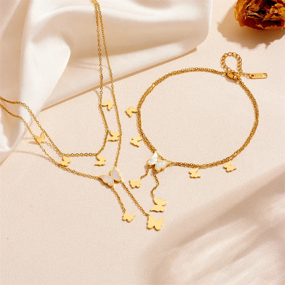 [Timeless Radiance & Ethereal Grace] Stainless Steel Color-Lasting Butterfly Tassel Necklace & Anklet Set — Capture Every Elegant Moment