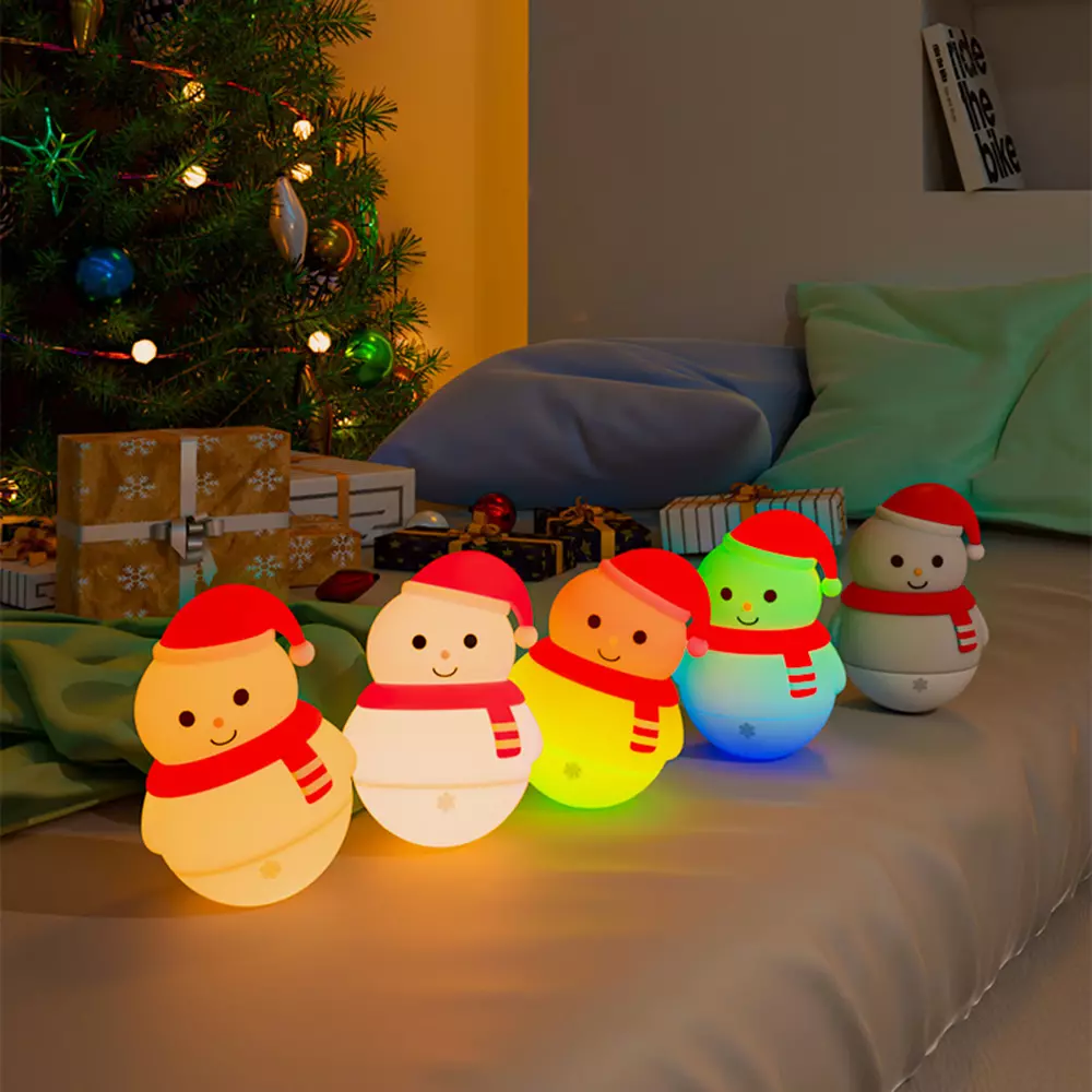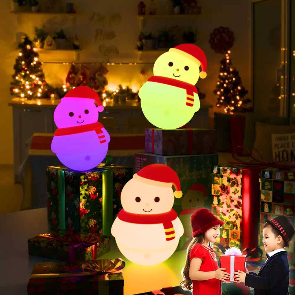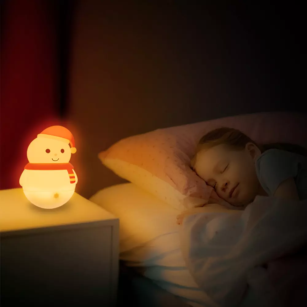 Snowman night light is a cute night light, the shape is designed as a snowman with a scarf. It uses LED light source, can provide 4 colors of light effect. With intelligent control function. You can tap to control the switch and change the color. You can choose different light colors according to your needs and mood.