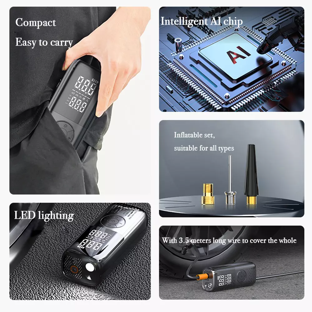 1, Portable mobile inflation pump, small size, light weight, novel appearance and other advantages.